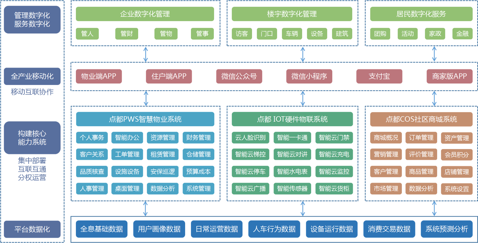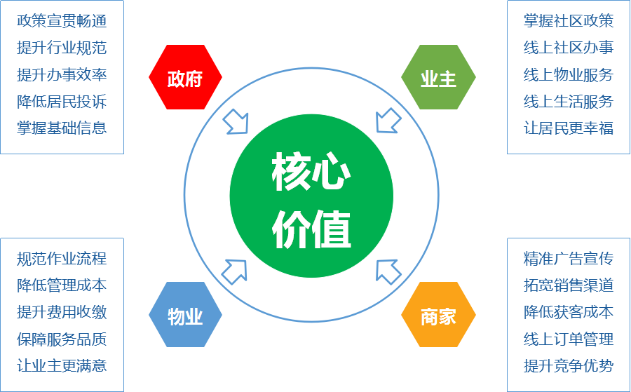 橫向連接政府、物業(yè)、居民、商家,縱向提供深化信息技術(shù)服務(wù)